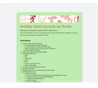 PDF documents to guide you in creating your own naturally cleaned, Tranquil Space.